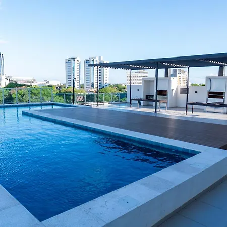 Als u in Luxury 2 Bedroom "Wake Up In The Sky" Best Views & Location In Asuncion appartement van 67 m² verblijft, kunt u het Casino van Asuncion bereiken, gelegen op loopafstand van nog geen 25 minuten. Bij het appartement hoort een zwembad op het dak met een bar aan het zwembad.